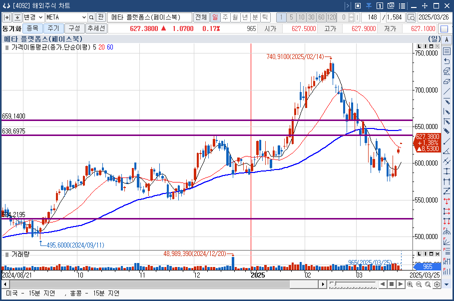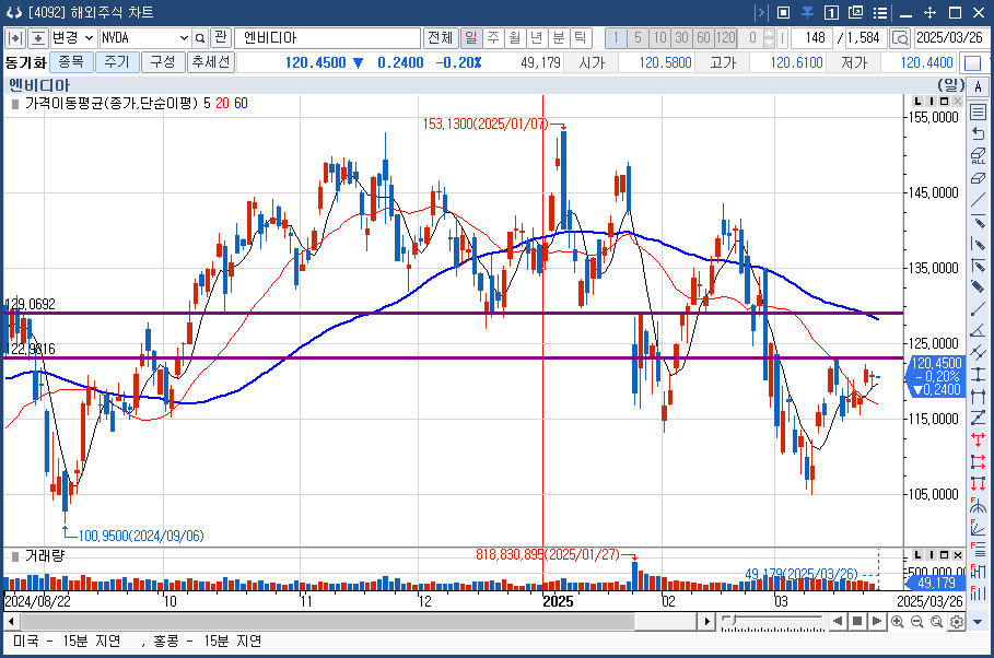 4. 마지막주 3/24일 - 상호관세 완화 기대감으로 단기 돌파 (20일선) 중 - 60일선까지 갈까.....